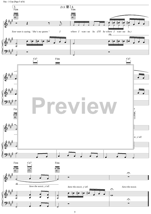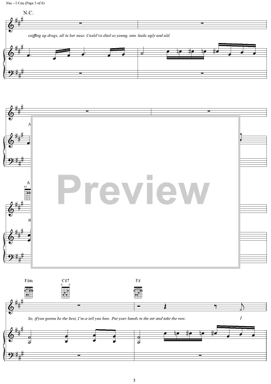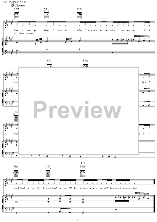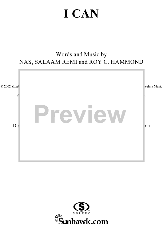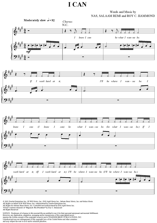 Digital Sheet Music for I Can by Nas, Salaam Remi, Roy C. Hammond scored for Piano/Vocal/Chords; id:304217