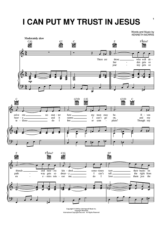 Digital Sheet Music for I Can Put My Trust In Jesus by Mahalia Jackson scored for Piano/Vocal/Chords; id:371599