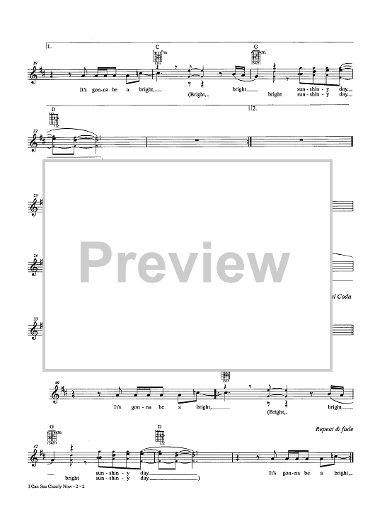 "I Can See Clearly Now" Sheet Music by Johnny Nash