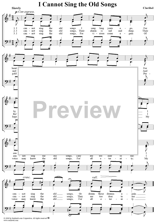 Digital Sheet Music for I Cannot Sing the Old Songs by Claribel scored for SATB or Piano/Vocal; id:265508