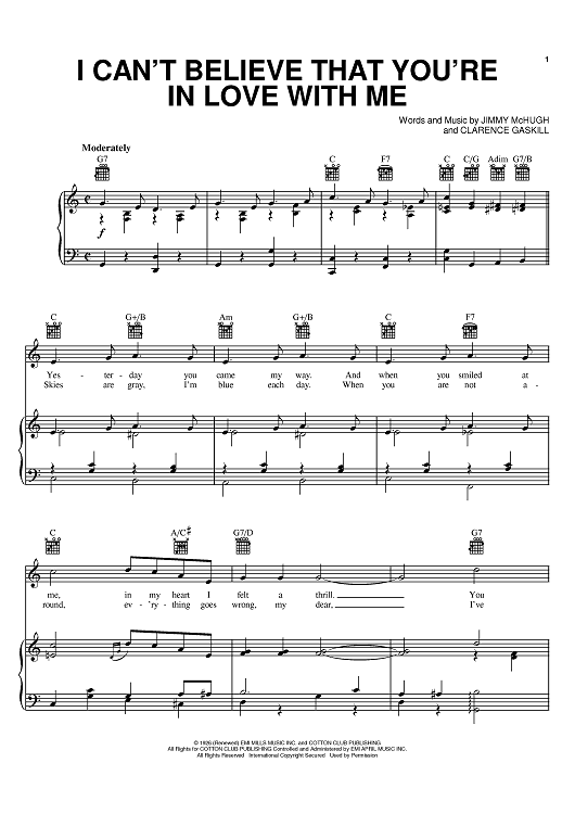 Digital Sheet Music for I Can't Believe That You're In Love With Me by Louis Armstrong, Duke Ellington, Billie Holiday, Clarence Gaskill, Jimmy McHugh scored for Piano/Vocal/Chords; id:374993