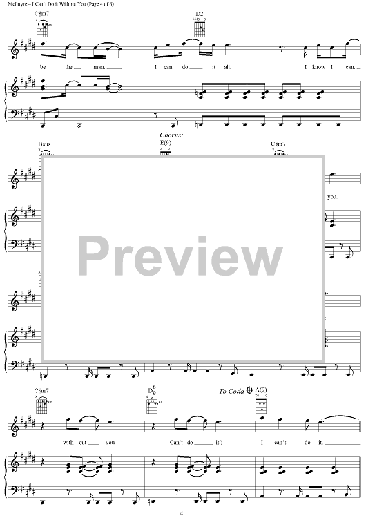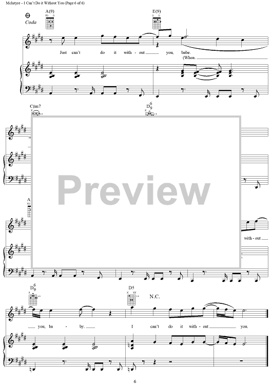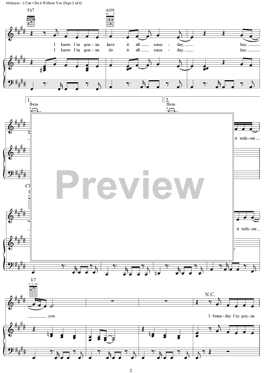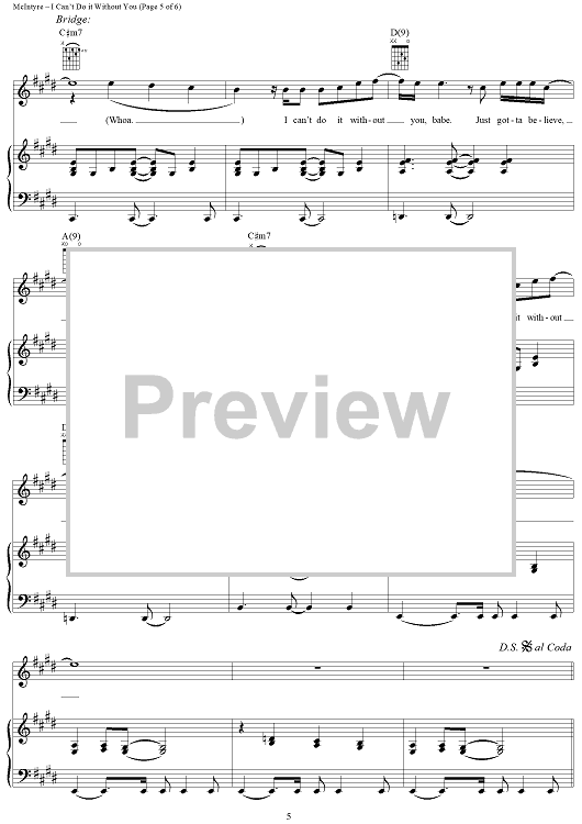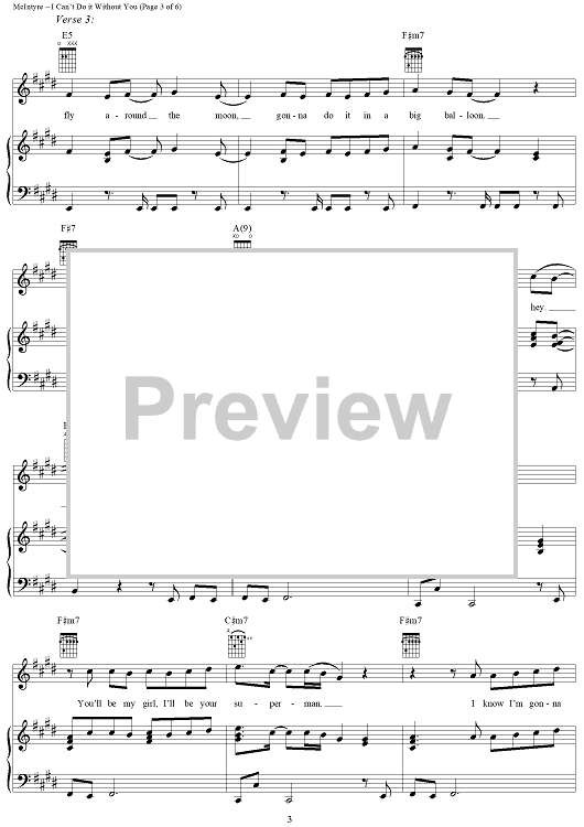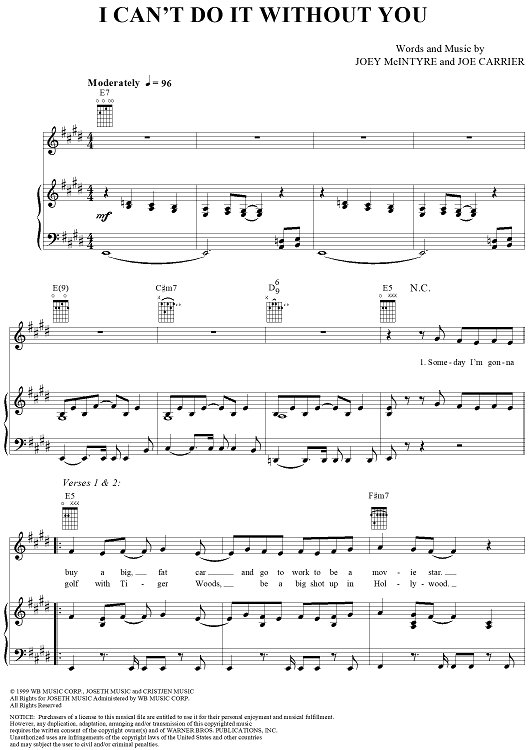 Digital Sheet Music for I Can't Do It Without You by Joey McIntyre, Joe Carrier scored for Piano/Vocal/Chords; id:234885