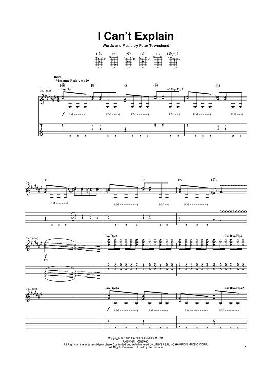 Digital Sheet Music for I Can't Explain by The Who, The Scorpions, Peter Townshend scored for Guitar Tab; id:374861