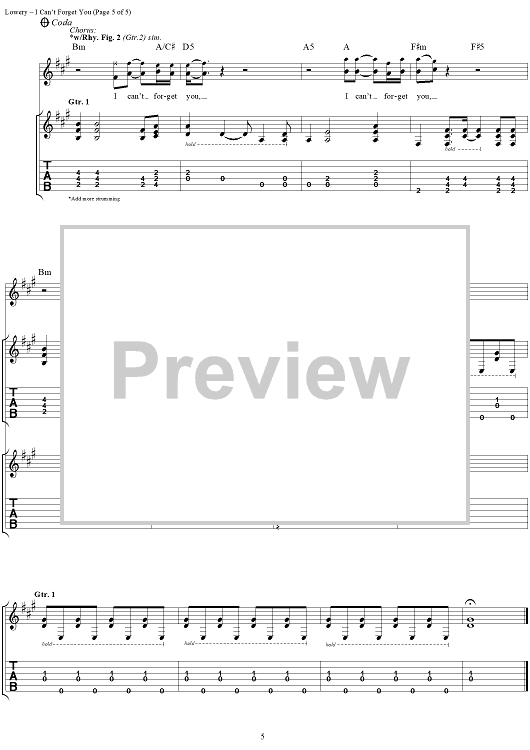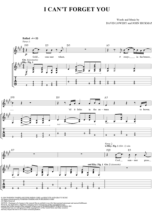 Digital Sheet Music for I Can't Forget You by John Hickman, David Lowery, Cracker scored for Guitar Tab/Vocal; id:112730