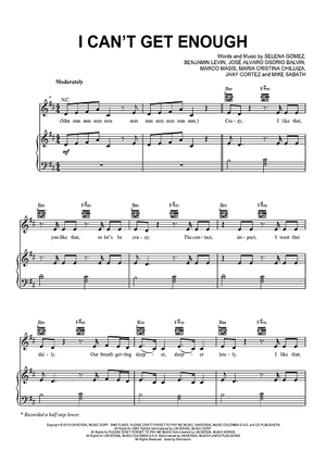 Digital Sheet Music for I Can't Get Enough by Benjamin Levin, Benny Blanco, Selena Gomez, J Balvin, Marco Masis, Maria Cristina Chiluiza, Jhay Cortez, Mike Sabath scored for Piano/Vocal/Chords; id:467459