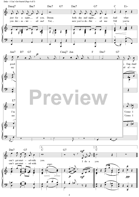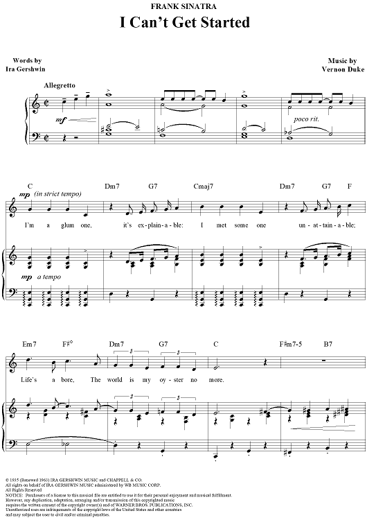 Digital Sheet Music for I Can't Get Started by Frank Sinatra, Ira Gershwin, Vernon Duke scored for Piano/Vocal/Chords; id:111938