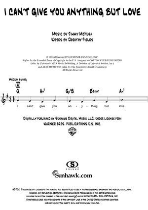 "I Can't Give You Anything But Love" Sheet Music by Jimmy McHugh