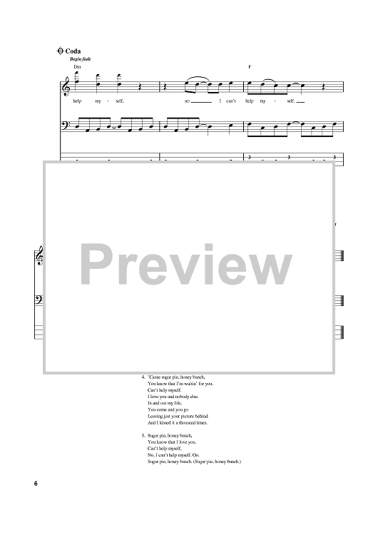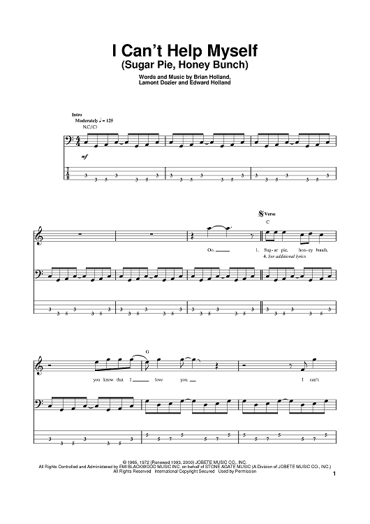 Digital Sheet Music for I Can't Help Myself (Sugar Pie, Honey Bunch) by Four Tops, Lamont Dozier, Brian Holland, Eddie Holland scored for Bass Tab; id:381461