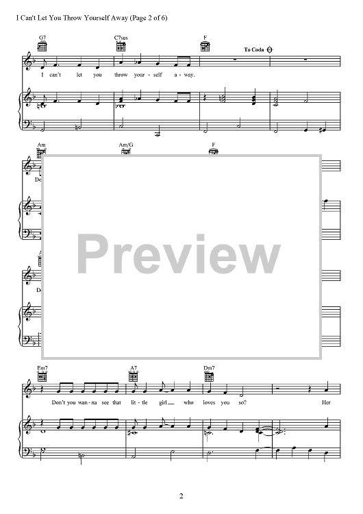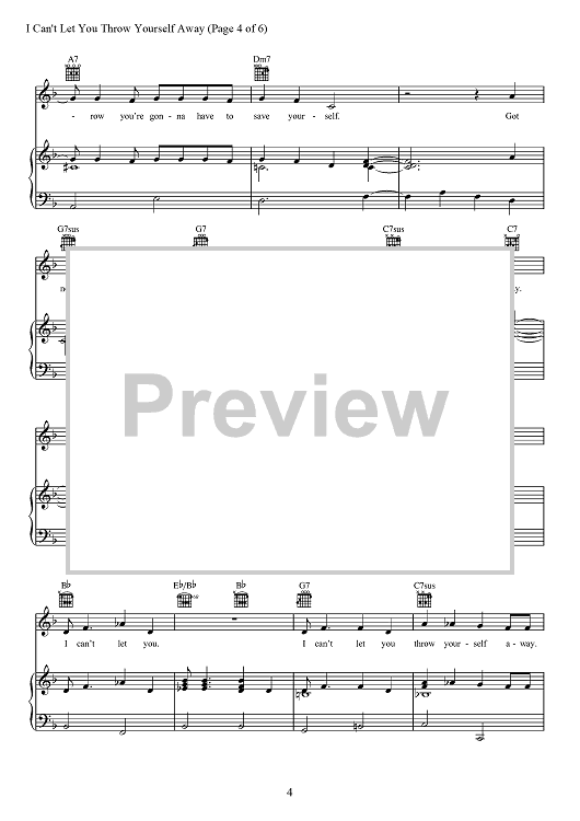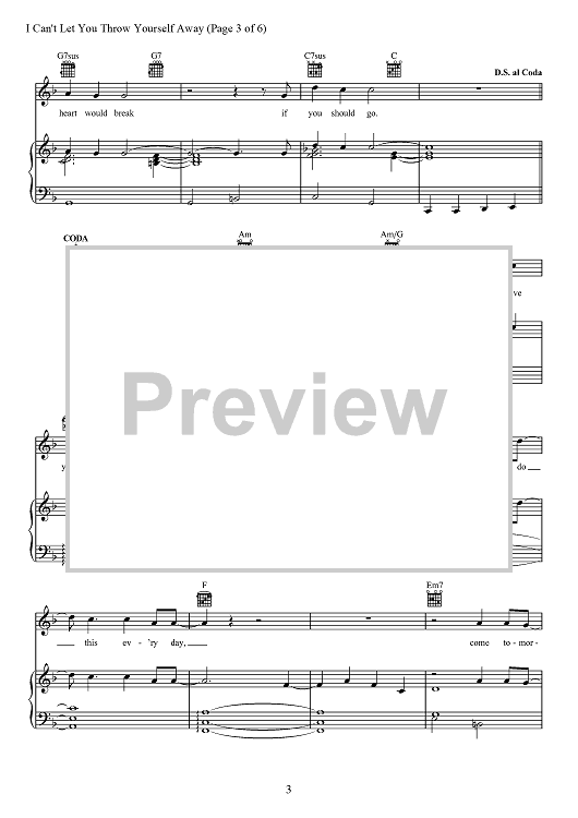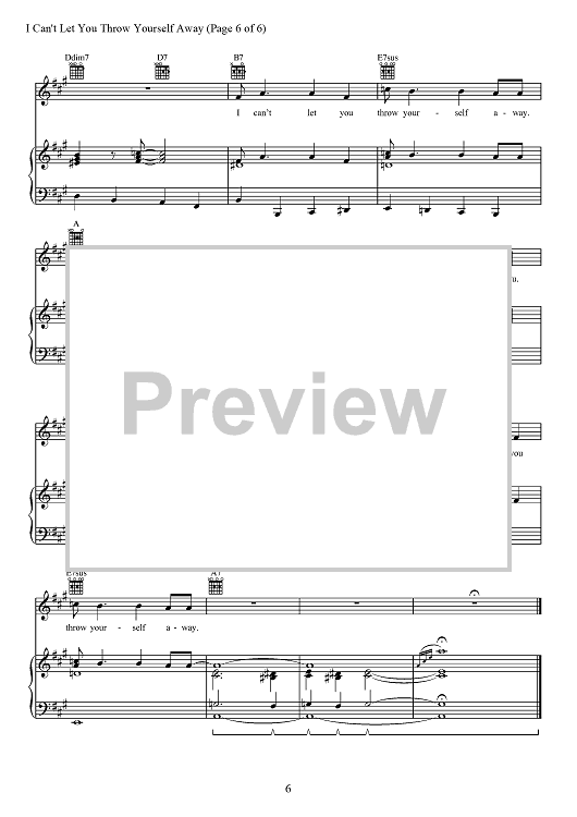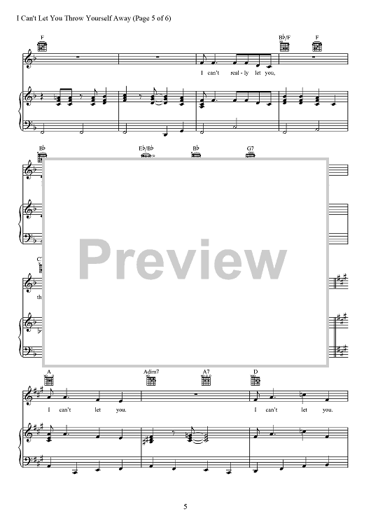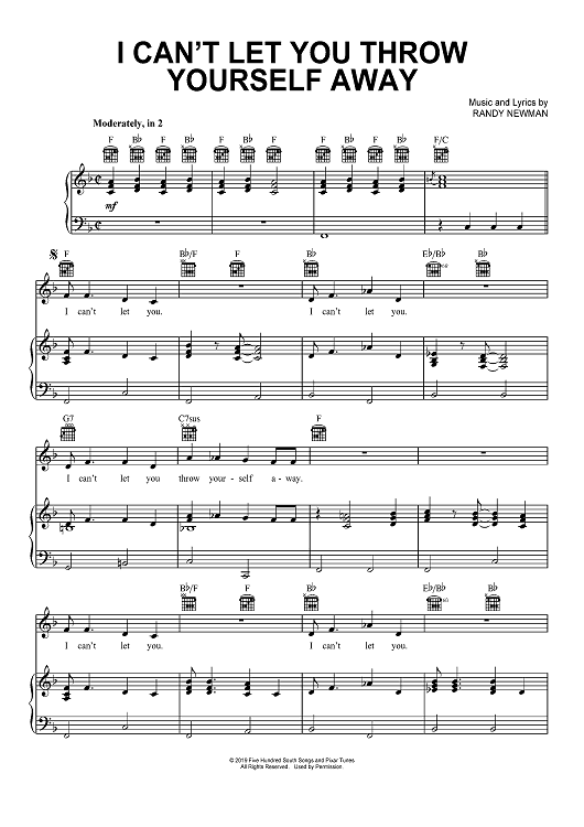 Digital Sheet Music for I Cant Let You Throw Yourself Away - from Toy Story 4 by Randy Newman scored for Piano/Vocal/Chords; id:467801