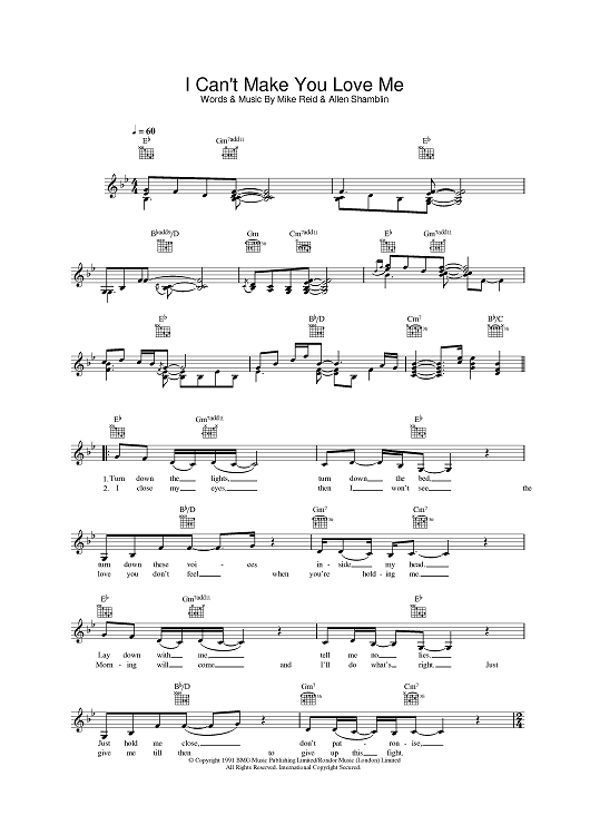 Digital Sheet Music for I Can't Make You Love Me by Allen Shamblin, Mike Reid, Bonnie Raitt scored for Lead Sheet; id:385371