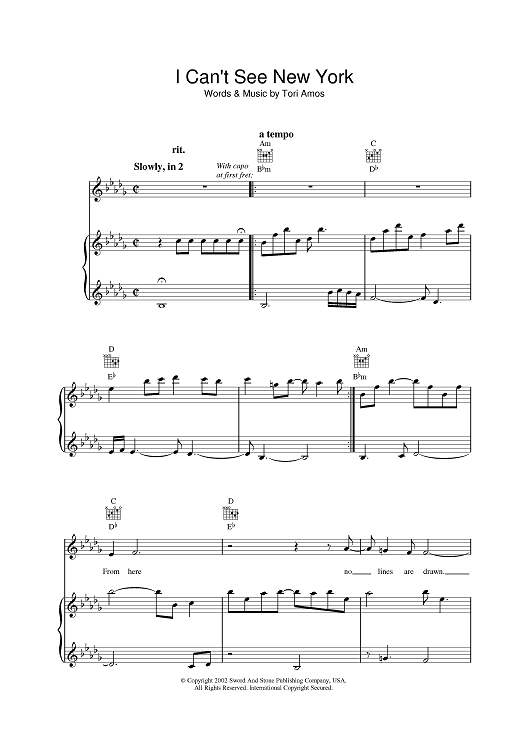 Digital Sheet Music for I Can't See New York by Tori Amos scored for Piano/Vocal/Chords; id:392401