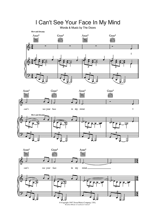 "I Can't See Your Face In My Mind" Sheet Music by The Doors