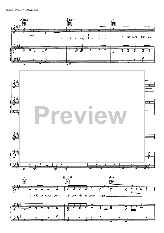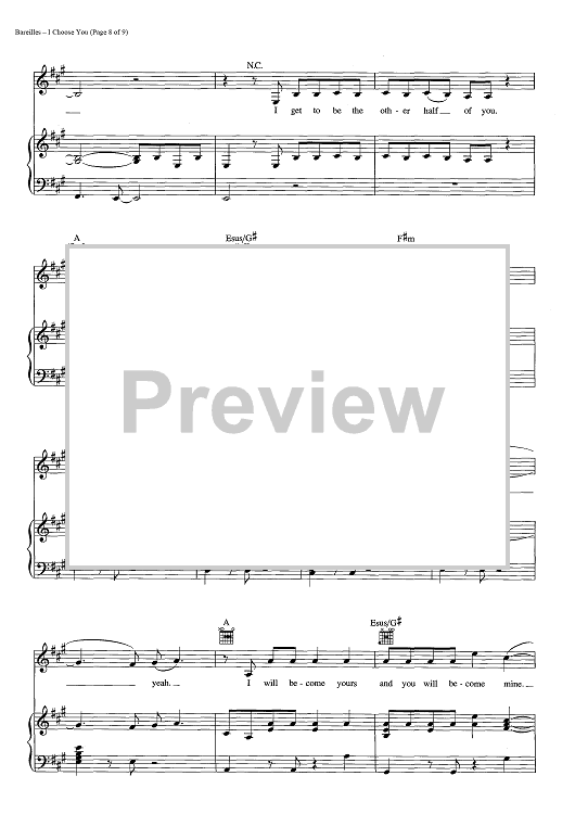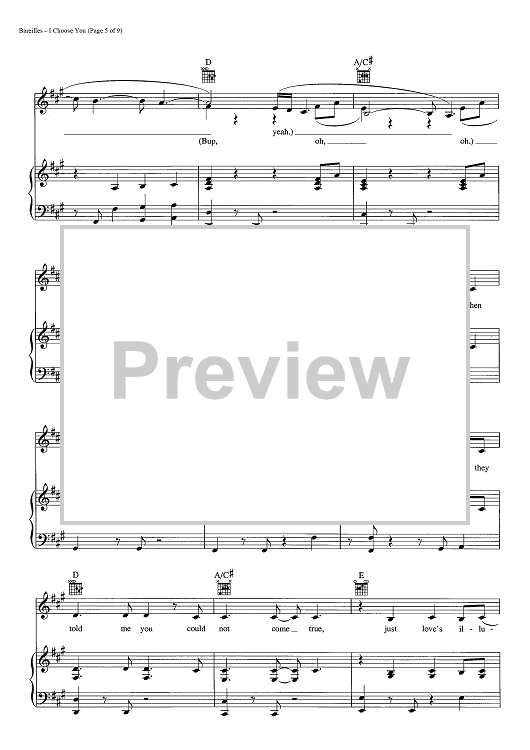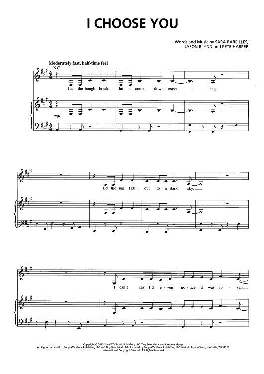 Digital Sheet Music for I Choose You by Sara Bareilles, Jason Blynn, Pete Harper scored for Piano/Vocal/Chords; id:438414
