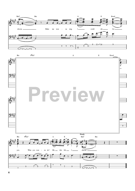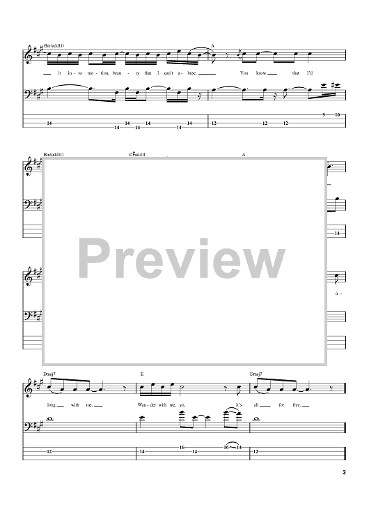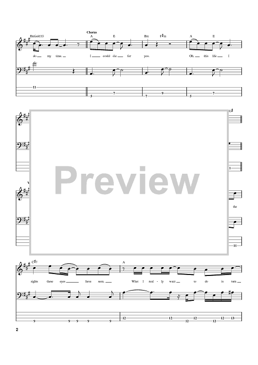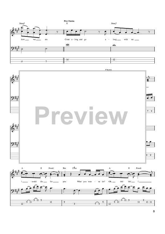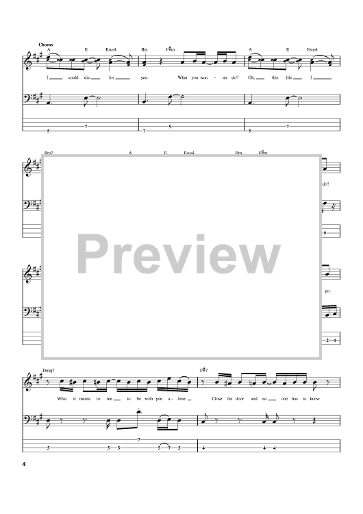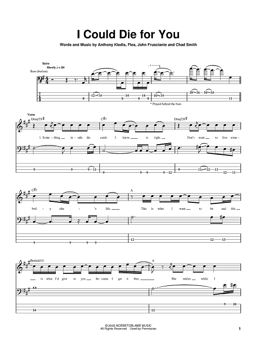 Digital Sheet Music for I Could Die For You by Flea, John Frusciante, Anthony Kiedis, Red Hot Chili Peppers scored for Bass Tab; id:372150