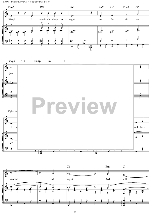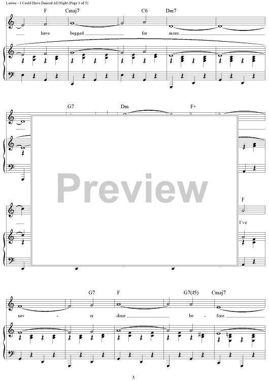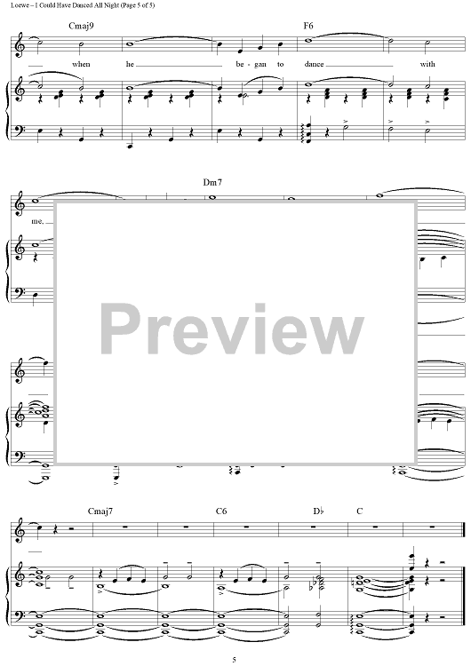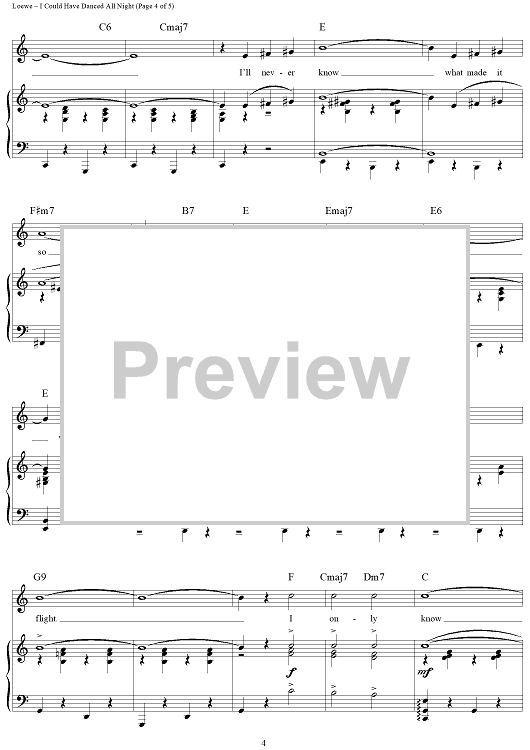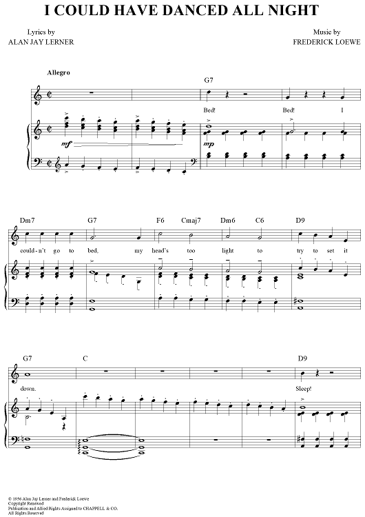 Digital Sheet Music for I Could Have Danced All Night by Frederick Loewe, Alan Jay Lerner scored for Piano/Vocal/Chords; id:297207