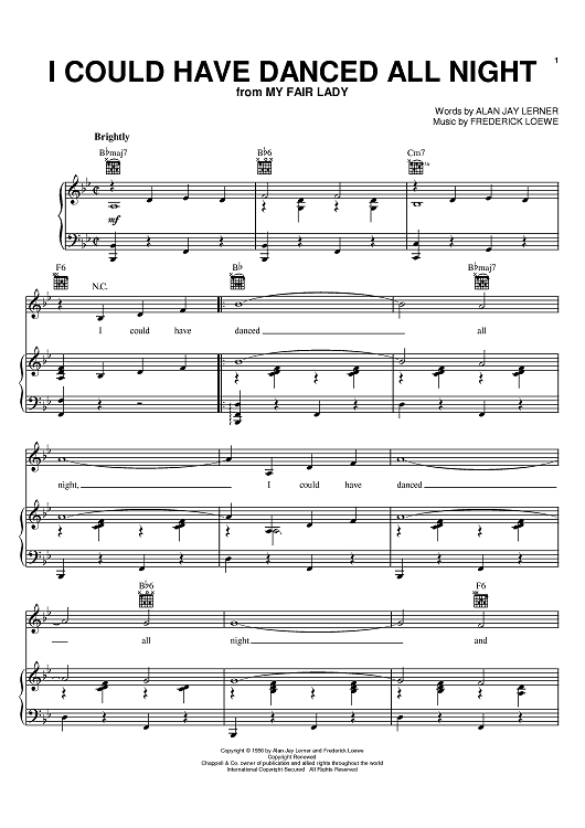Digital Sheet Music for I Could Have Danced All Night by Frederick Loewe, Alan Jay Lerner scored for Piano/Vocal/Chords; id:368062