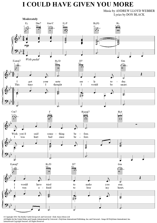 Digital Sheet Music for I Could Have Given You More by Don Black, Andrew Lloyd Webber, Petula Clark scored for Piano/Vocal/Chords; id:367182