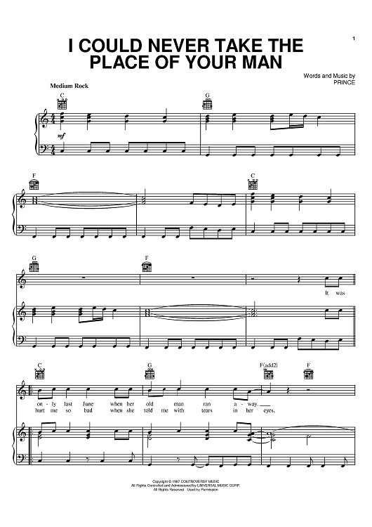 Digital Sheet Music for I Could Never Take The Place Of Your Man by Prince scored for Piano/Vocal/Chords; id:398356