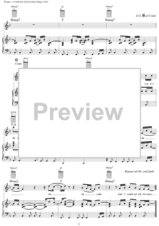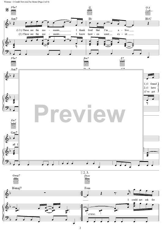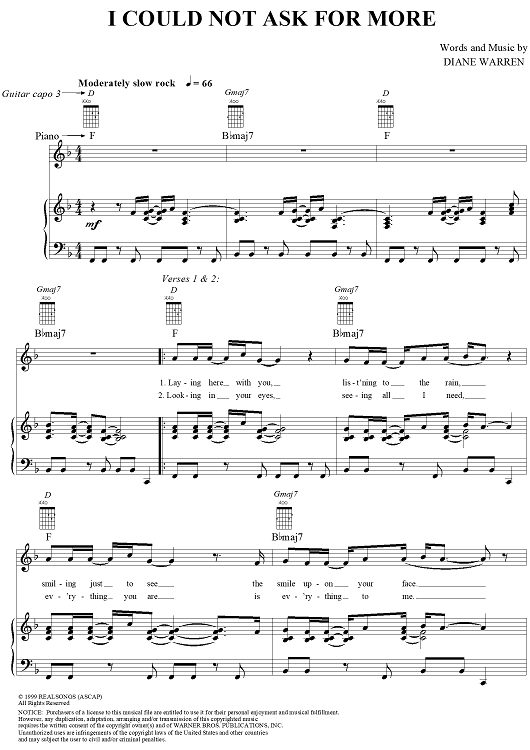 Digital Sheet Music for I Could Not Ask For More by Diane Warren, Edwin McCain scored for Piano/Vocal/Chords; id:114384
