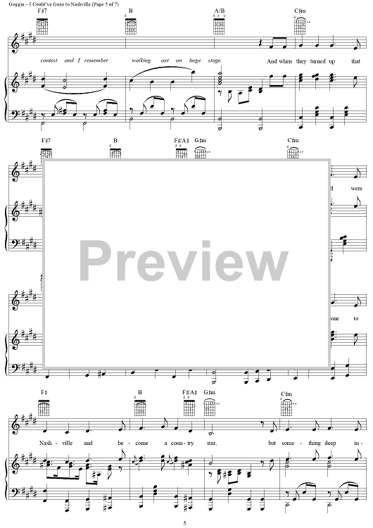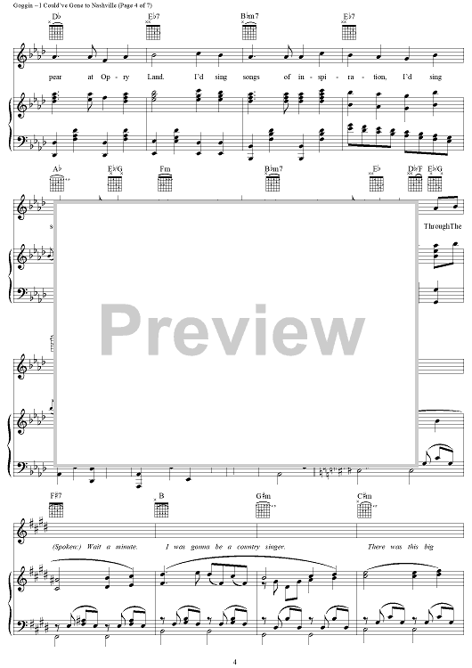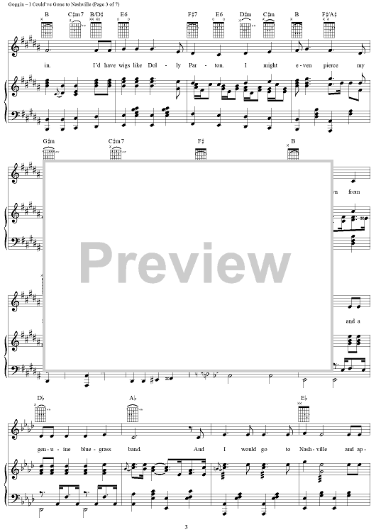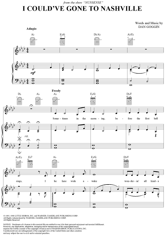 Digital Sheet Music for I Could've Gone to Nashville by Dan Goggin scored for Piano/Vocal/Chords; id:267968