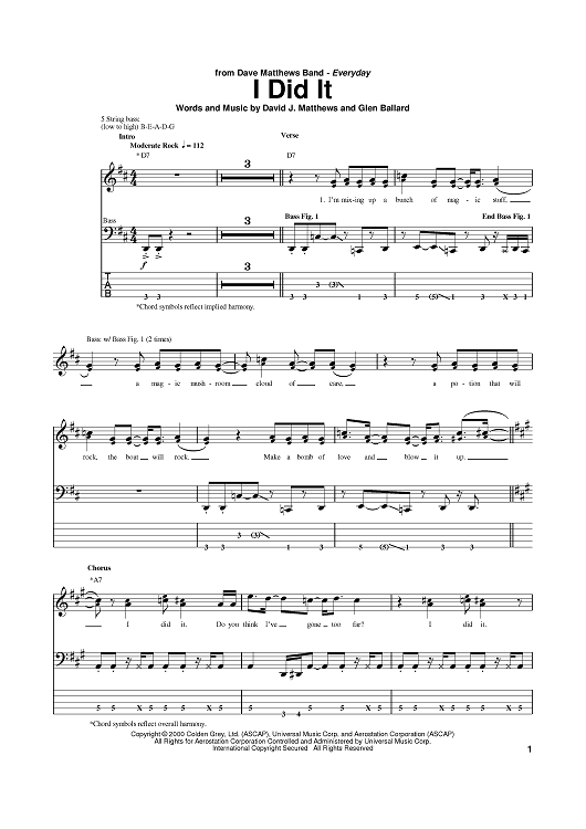 Digital Sheet Music for I Did It by Glen Ballard, Dave Matthews Band, Dave Matthews scored for Bass Tab; id:383053