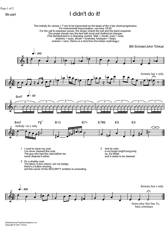 Digital Sheet Music for I Didn't Do It! by , Bill Scholer, John Tchicai scored for B-flat Lead Sheet; id:322831