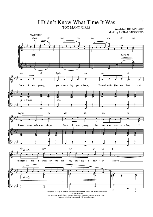 Digital Sheet Music for I Didn't Know What Time It Was by Richard Rodgers, Lorenz Hart scored for Piano/Vocal/Chords; id:397181