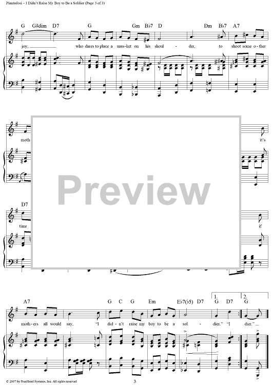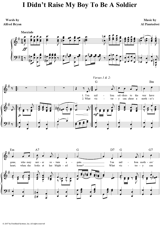 Digital Sheet Music for I Didn't Raise My Boy to Be a Soldier by Alfred Bryan, Al Piantadosi scored for Piano/Vocal/Chords; id:360630