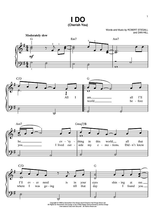 Digital Sheet Music for I Do (Cherish You) by Dan Hill, 98 Degrees, Keith Stegall scored for Easy Piano; id:389029