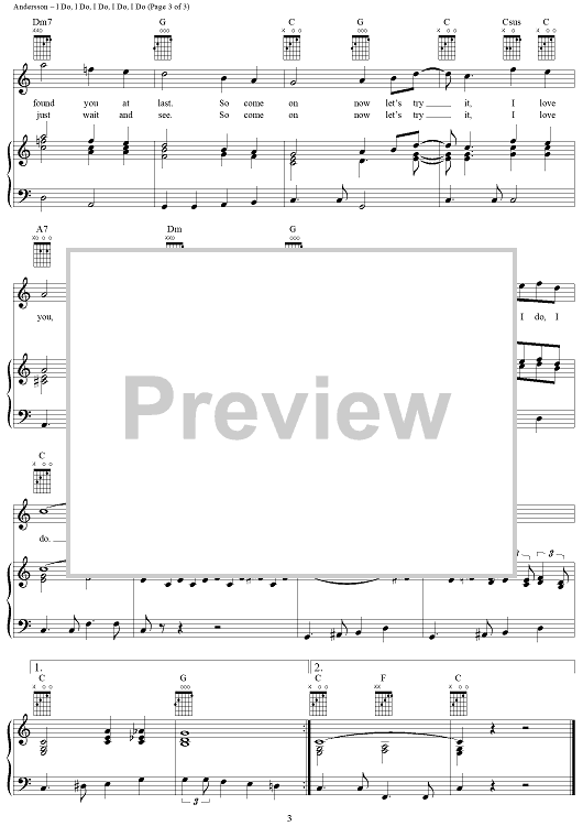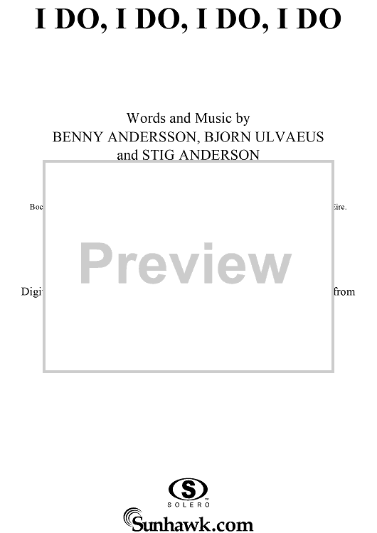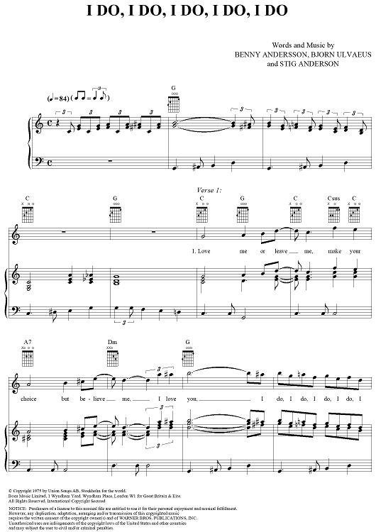 Digital Sheet Music for I Do, I Do, I Do, I Do, I Do by ABBA, Benny Andersson, Bjorn Ulvaeus, Stig Anderson scored for Piano/Vocal/Chords; id:292358
