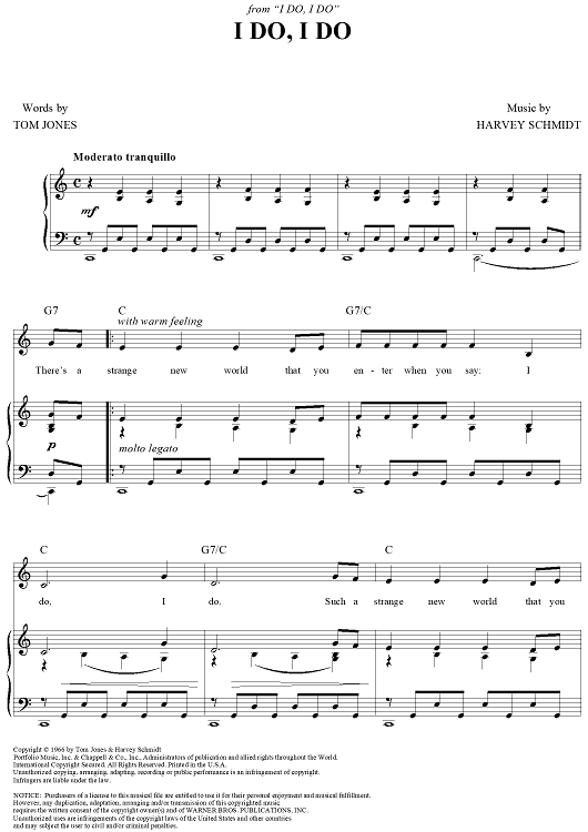Digital Sheet Music for I Do, I Do by Tom Jones, Harvey Schmidt scored for Piano/Vocal/Chords; id:313542