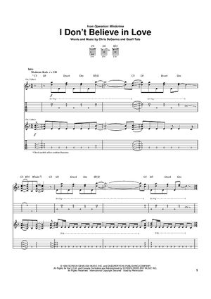 Digital Sheet Music for I Don't Believe In Love by Chris DeGarmo, Queensrÿche, Geoff Tate scored for Guitar Tab; id:380492