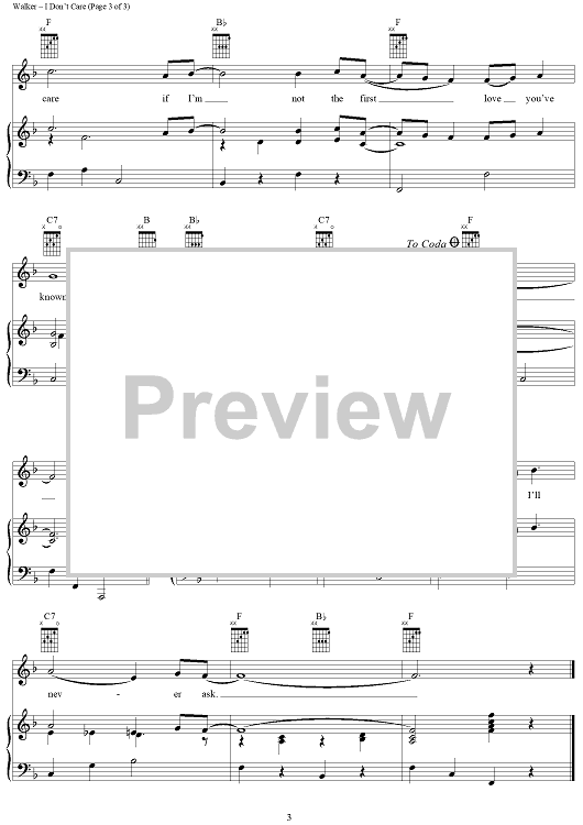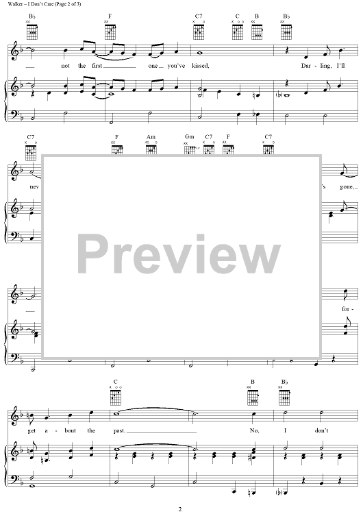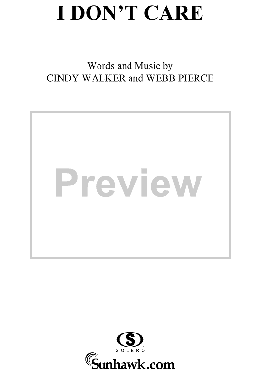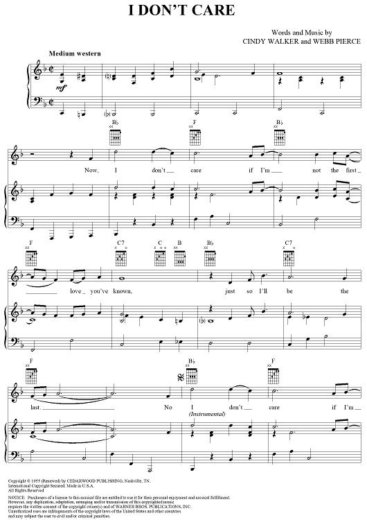 Digital Sheet Music for I Don't Care by Ricky Skaggs, Webb Pierce, Cindy Walker scored for Piano/Vocal/Chords; id:220399