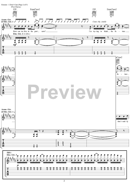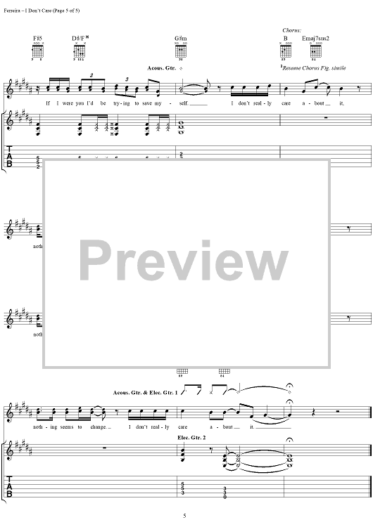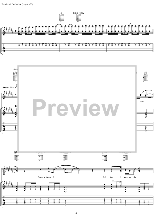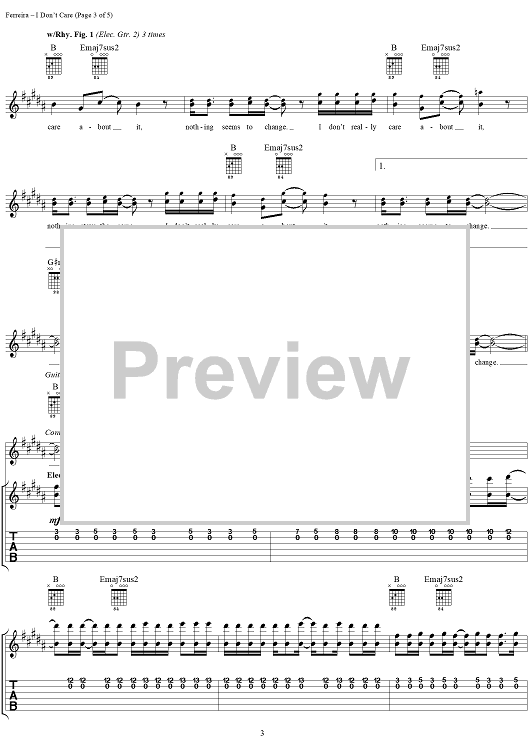 Digital Sheet Music for I Don't Care by Todd Whitener, Tantric, Hugo Ferreira, Matthew Taul, Jesse Vest scored for Guitar Tab/Vocal; id:287756