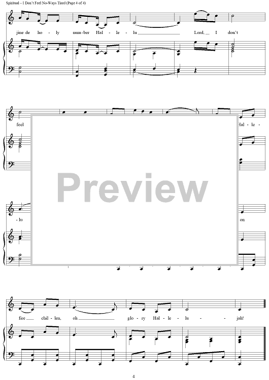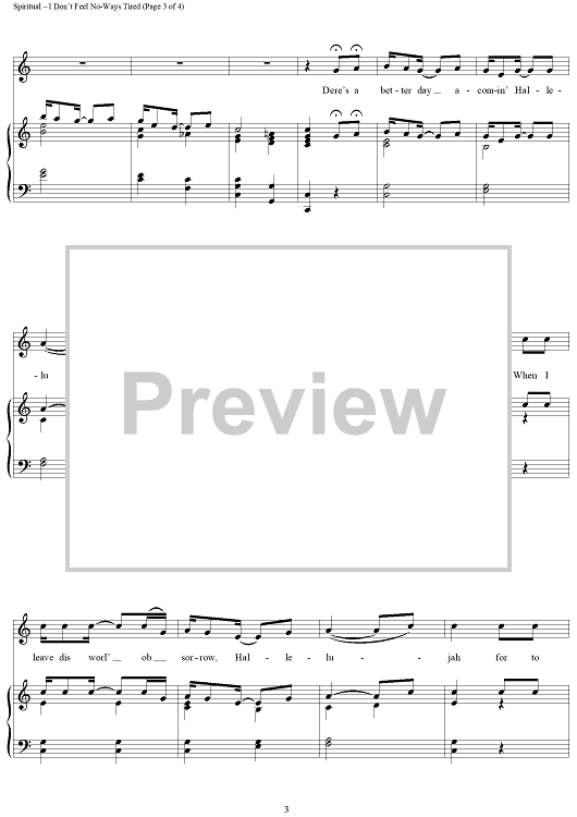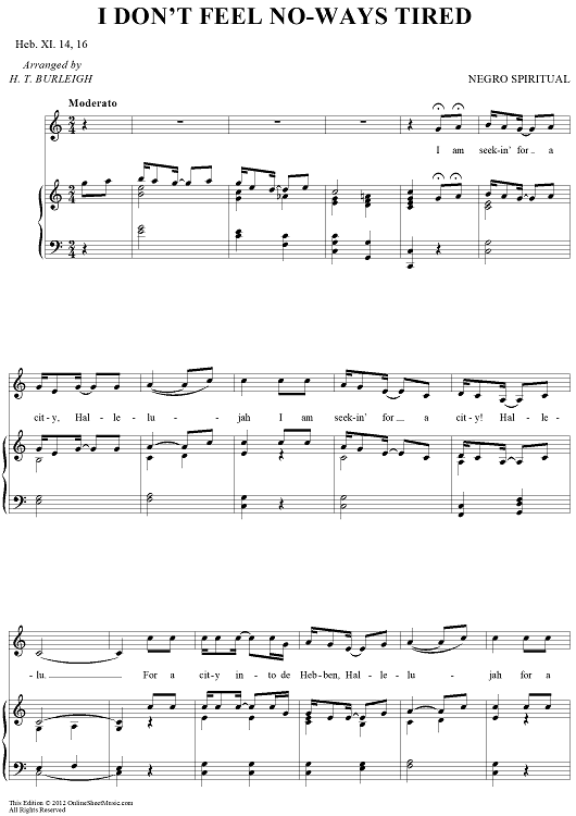 Digital Sheet Music for I Don't Feel No-Ways Tired by H. T. Burleigh, African American Spiritual scored for Piano/Vocal; id:433202