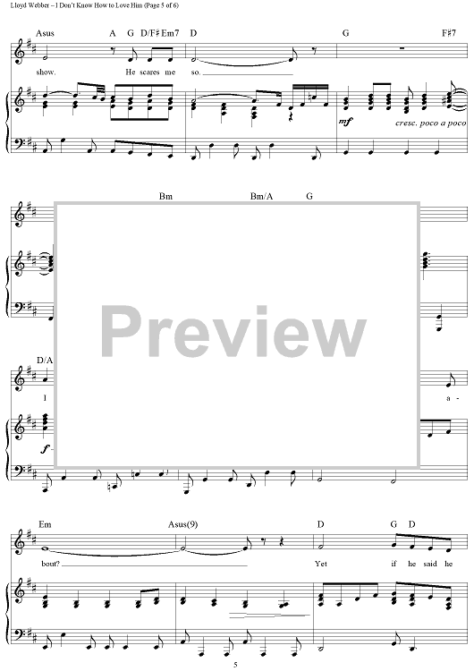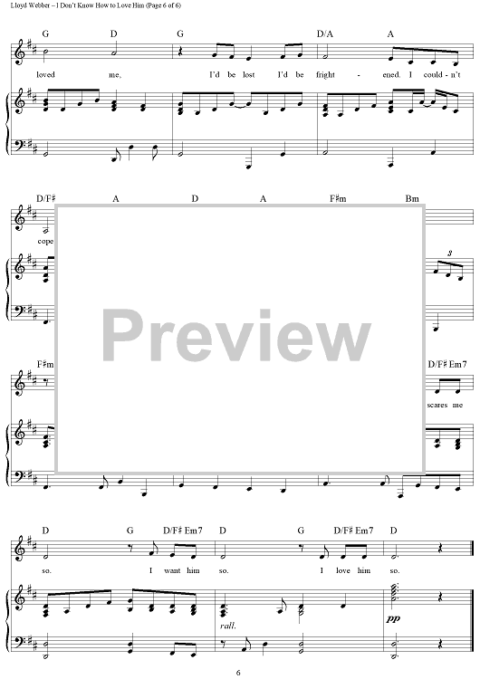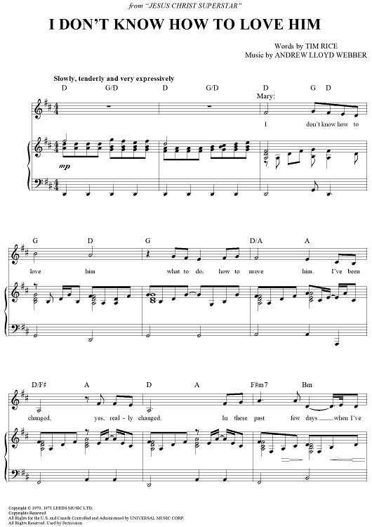 Digital Sheet Music for I Don't Know How to Love Him by Andrew Lloyd Webber, Tim Rice, Helen Reddy scored for Piano/Vocal/Chords; id:403158