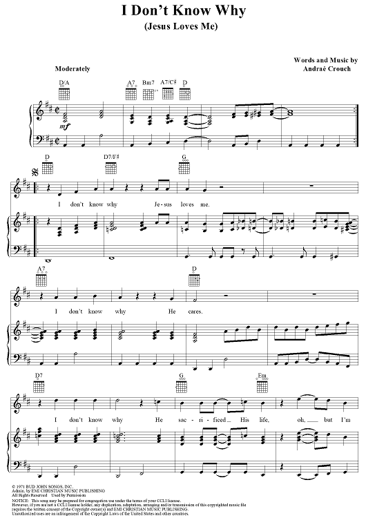 "I Don't Know Why (Jesus Loves Me)" Sheet Music by Andrae Crouch