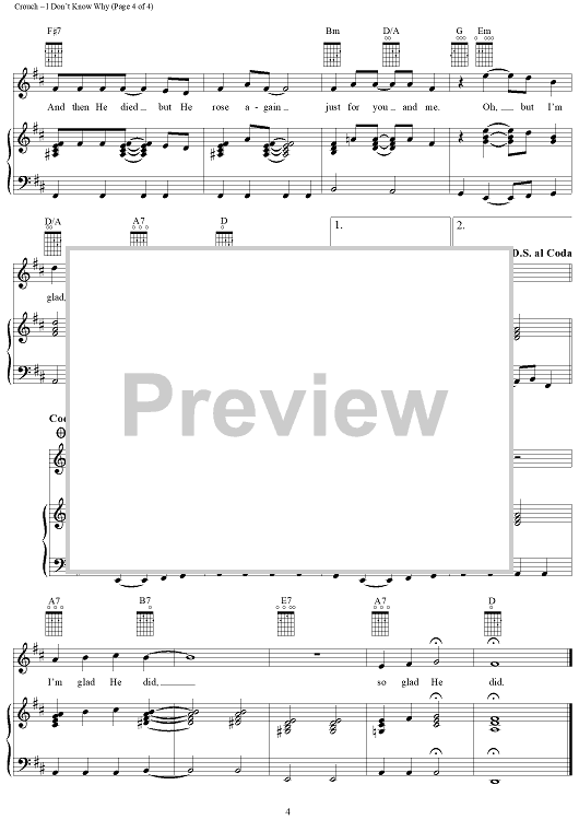 Digital Sheet Music for I Don't Know Why (Jesus Loves Me) by Andrae Crouch scored for Piano/Vocal/Chords; id:113493