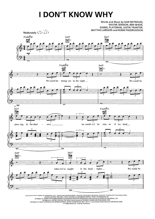"I Don't Know Why" Sheet Music by Imagine Dragons