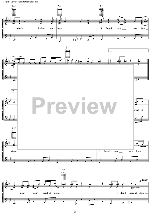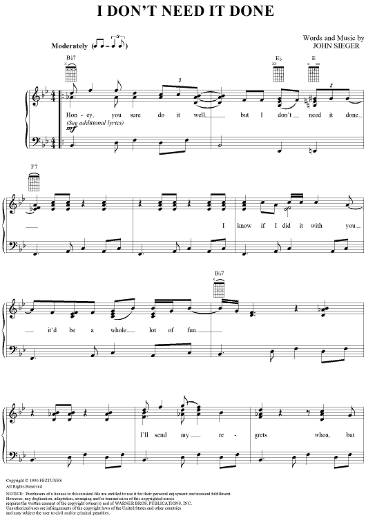 Digital Sheet Music for I Don't Need It Done by John Sieger, Dwight Yoakam scored for Piano/Vocal/Chords; id:124248