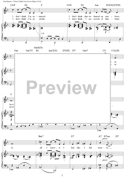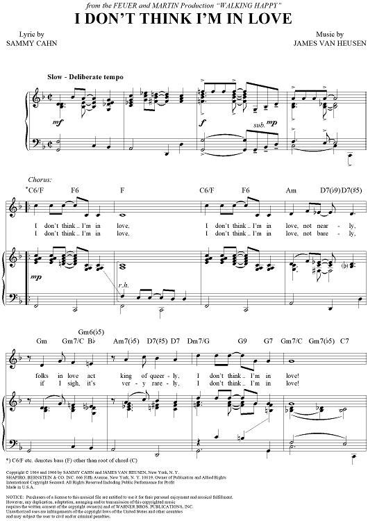 Digital Sheet Music for I Don't Think I'm in Love by Sammy Cahn, Jimmy Van Heusen scored for Piano/Vocal/Chords; id:355329