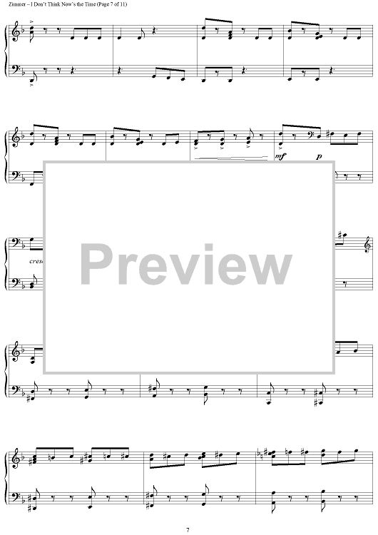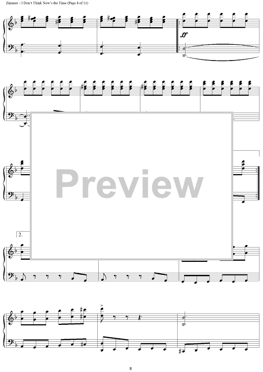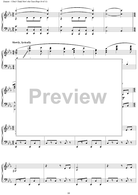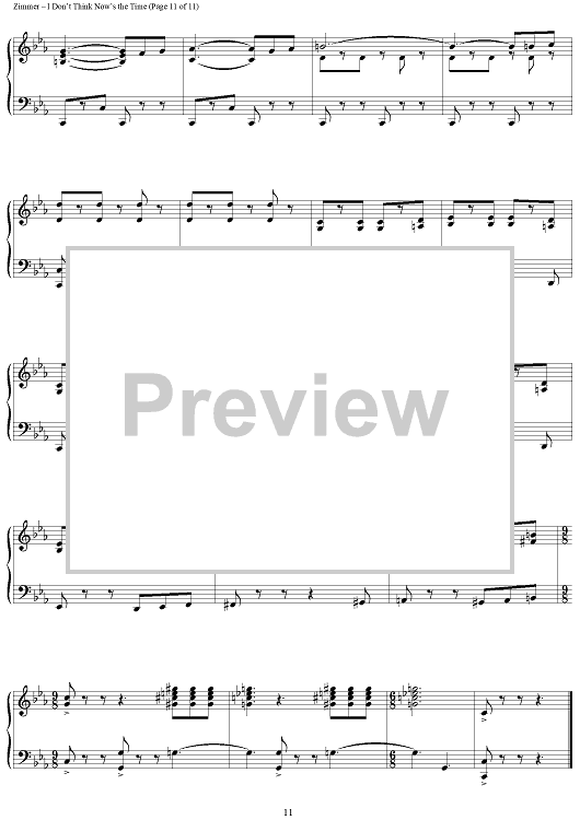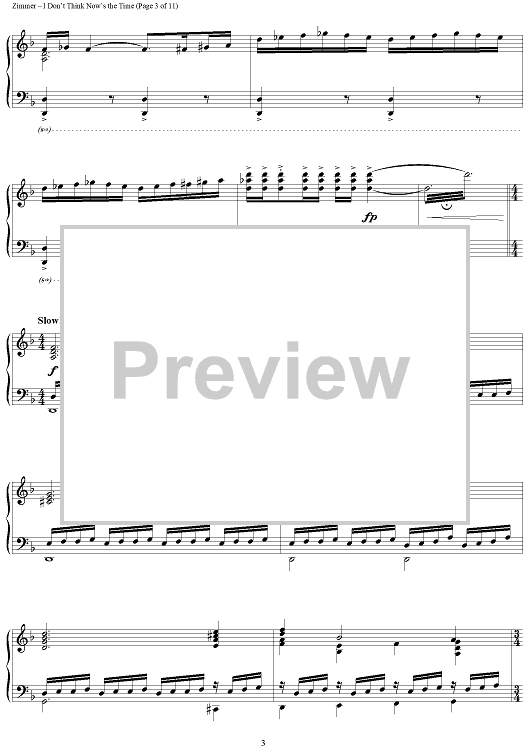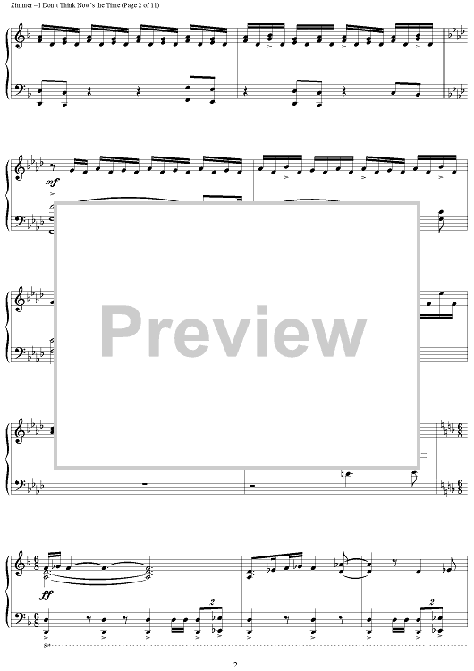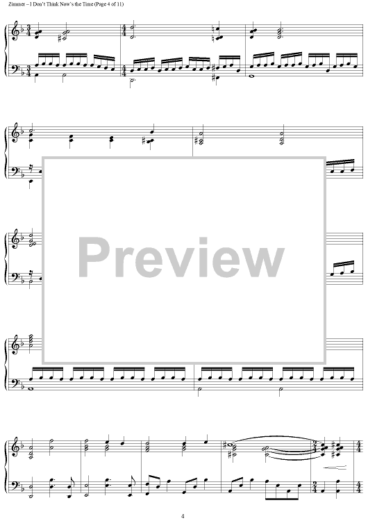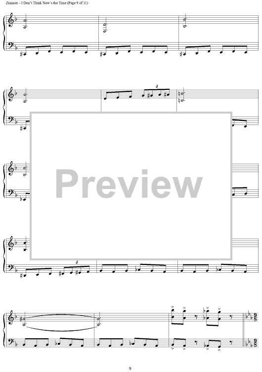 Digital Sheet Music for I Don't Think Now's The Time by Hans Zimmer scored for Piano Solo; id:398050