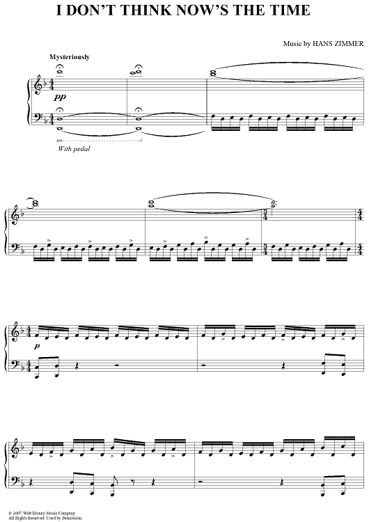 "I Don't Think Now's The Time" Sheet Music by Hans Zimmer