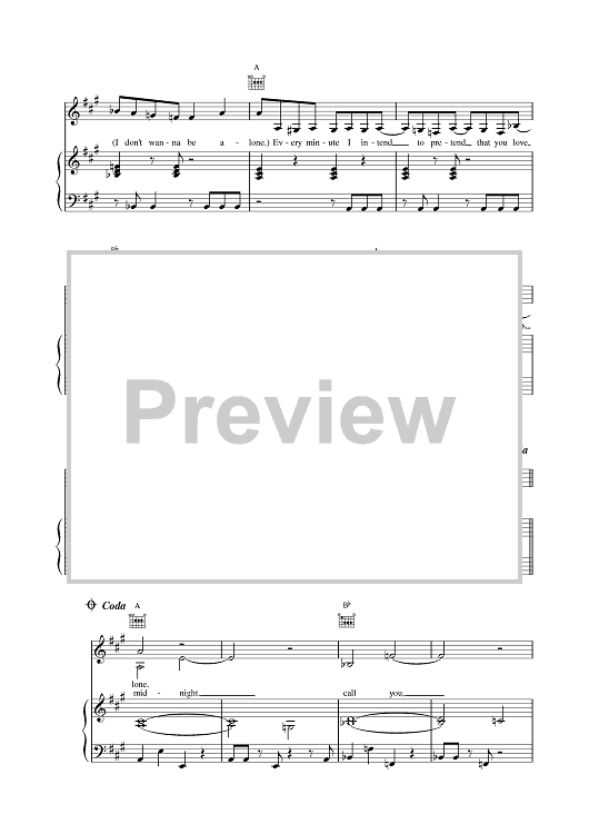 "I Don't Wanna Be Alone" Sheet Music by All Saints