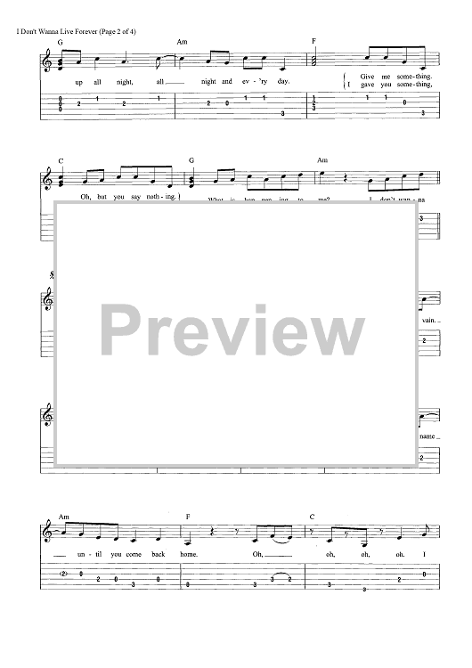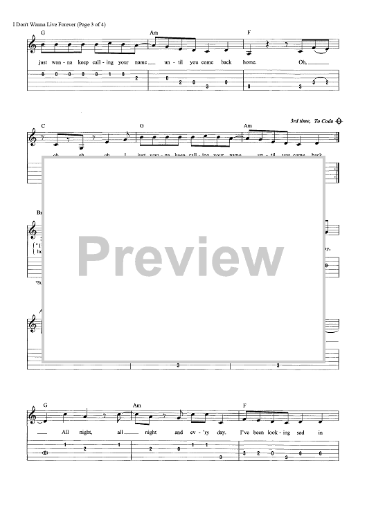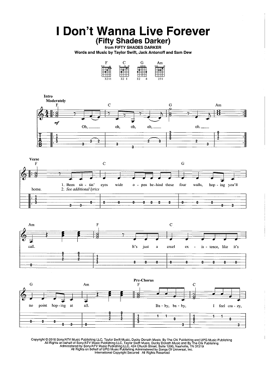 Digital Sheet Music for I Don't Wanna Live Forever by Taylor Swift, Jack Antonoff, Sam Dew scored for Easy Guitar Tab/Vocal; id:465616