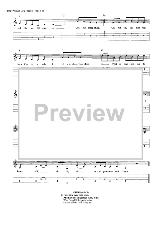 "I Don't Wanna Live Forever" Sheet Music by Taylor Swift
