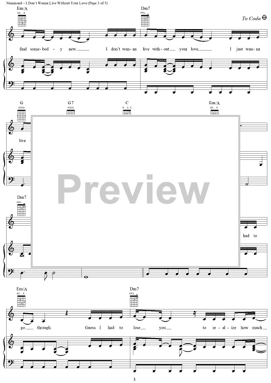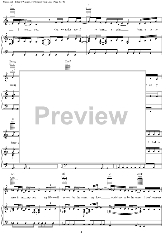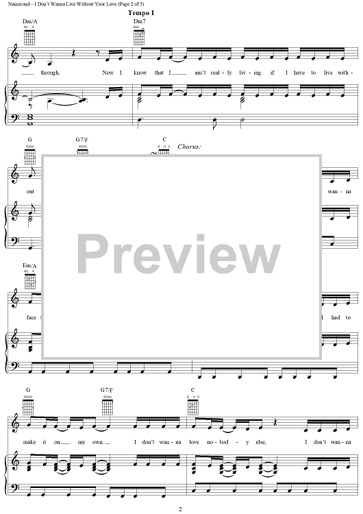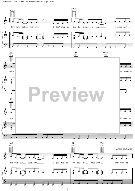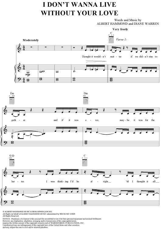 Digital Sheet Music for I Don't Wanna Live Without Your Love by Diane Warren, Albert Hammond, Chicago scored for Piano/Vocal/Chords; id:234758