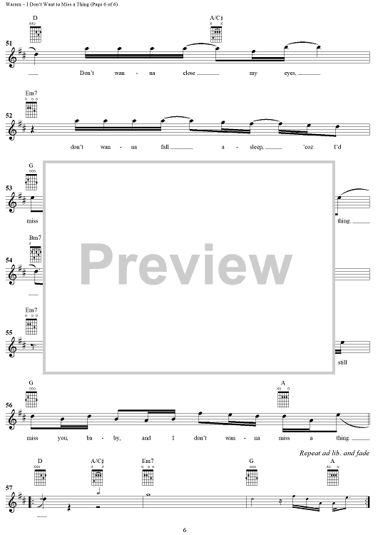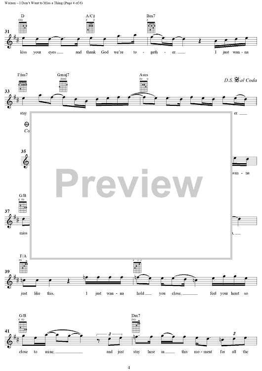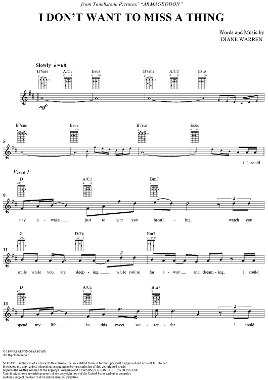 "I Don't Want To Miss a Thing" Sheet Music by Aerosmith