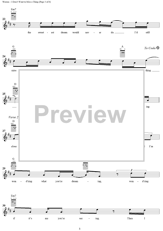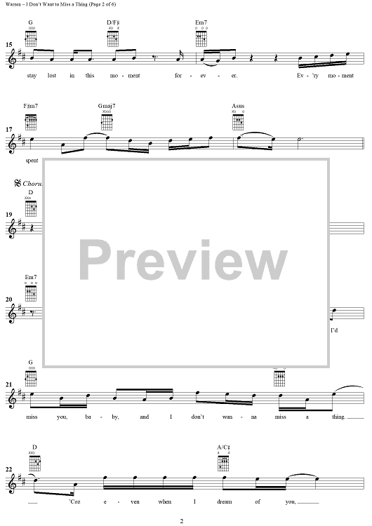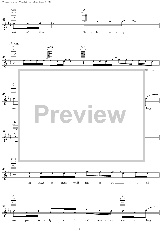 Digital Sheet Music for I Don't Want To Miss a Thing by Diane Warren, Aerosmith scored for Easy Guitar/Vocal; id:285720