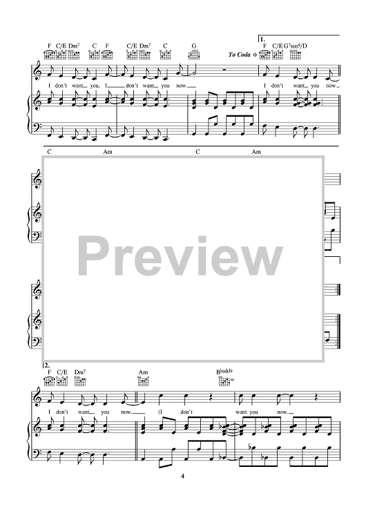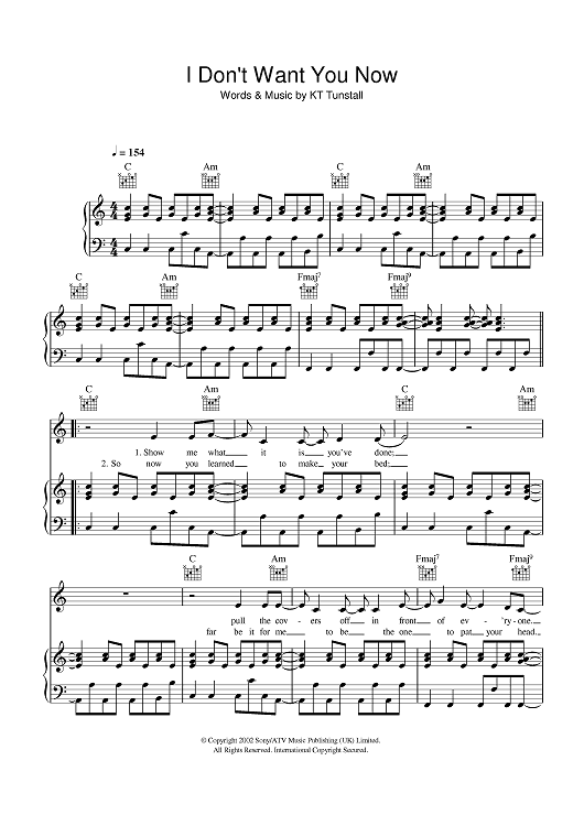 Digital Sheet Music for I Don't Want You Now by KT Tunstall scored for Piano/Vocal/Chords; id:401660